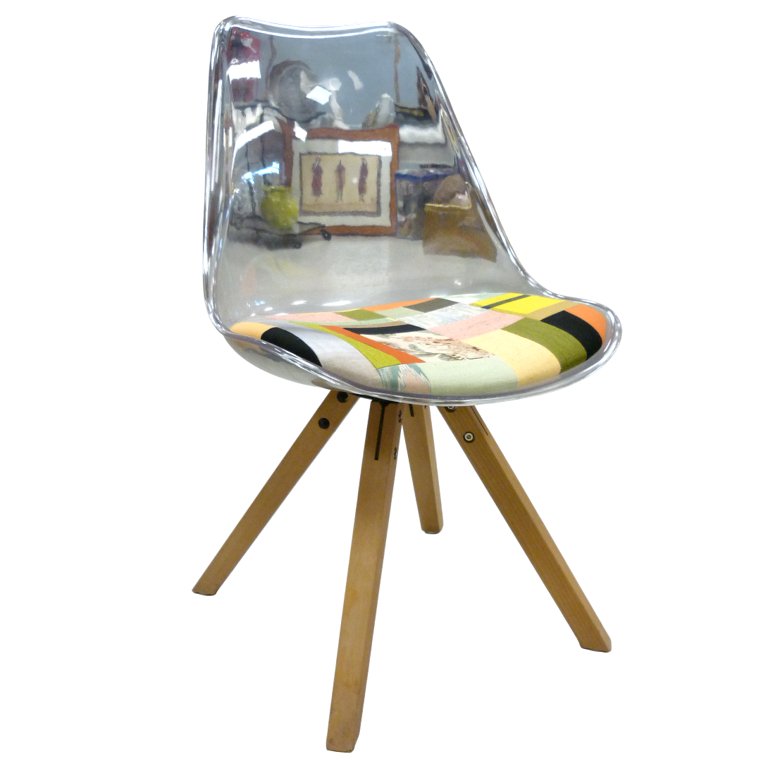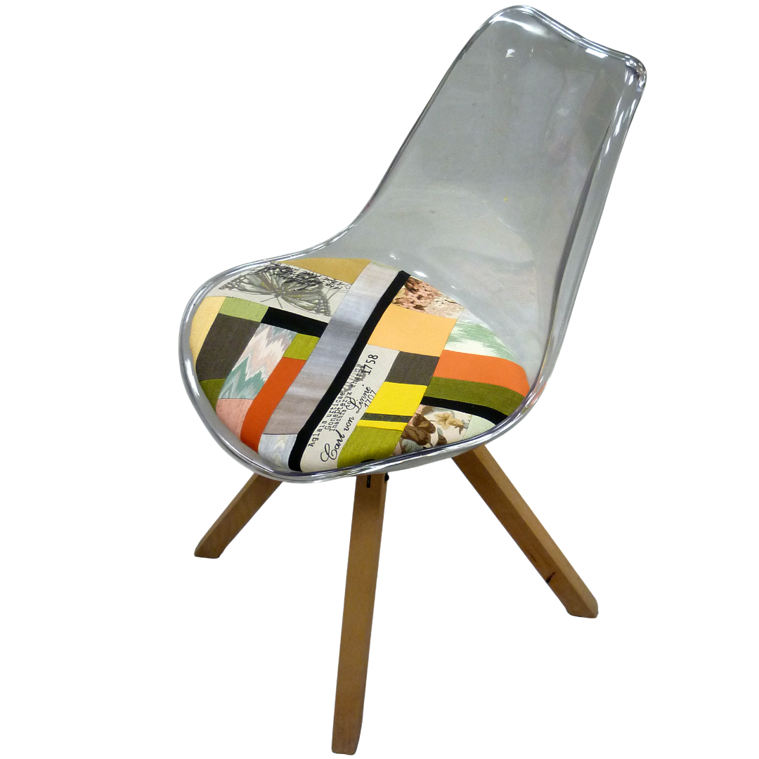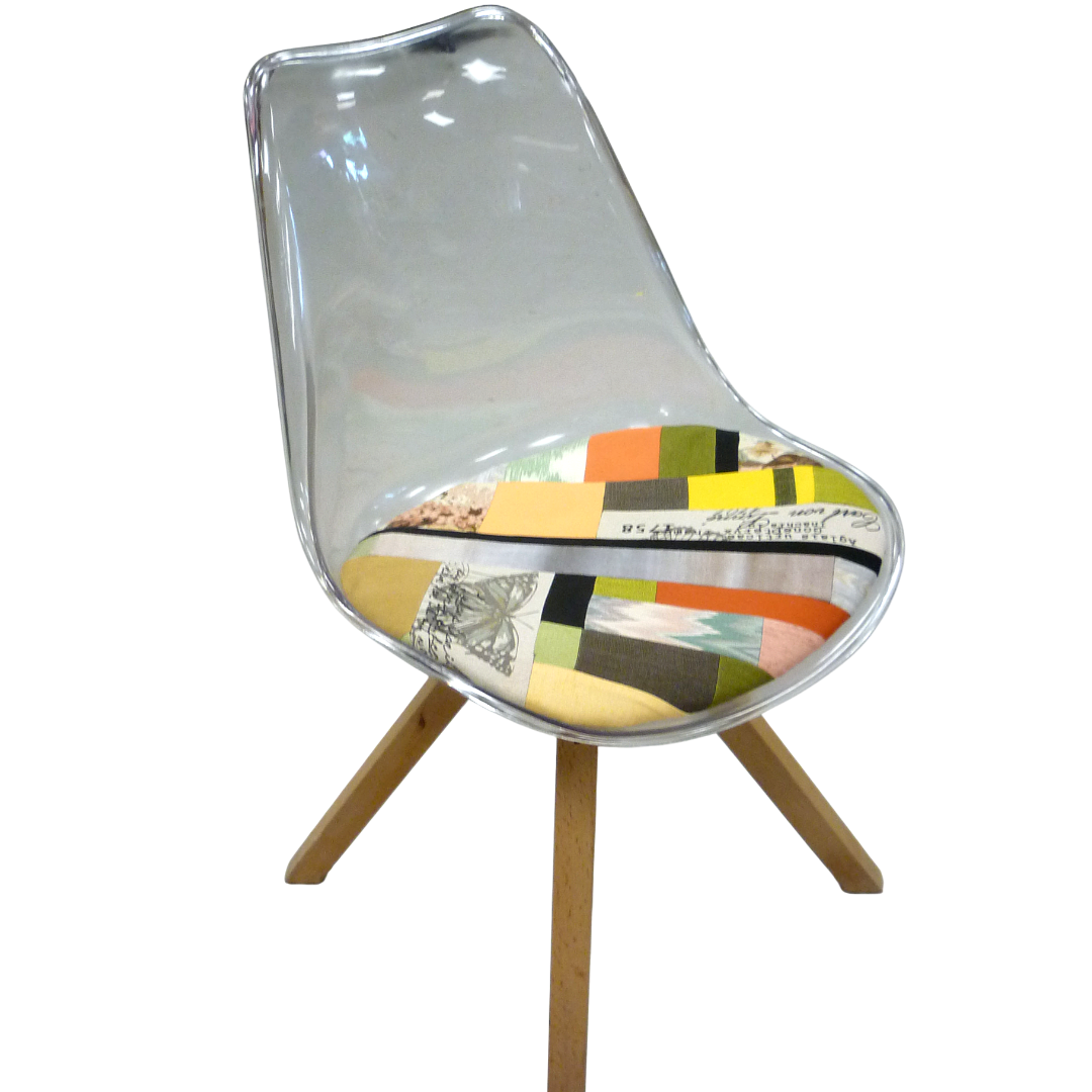 Lot de 3 chaises en plexiglass, assises relookées patchwork, made in ELAN