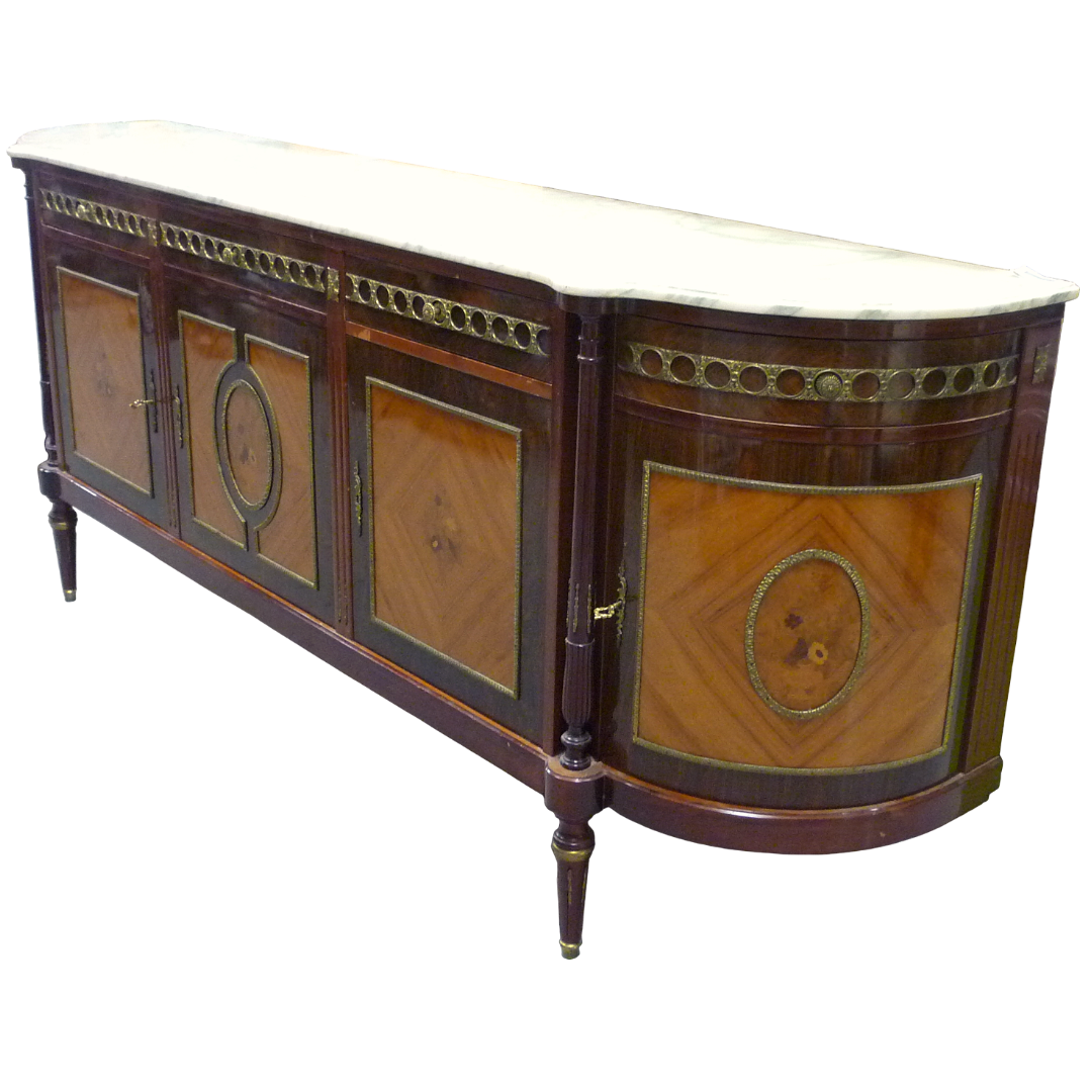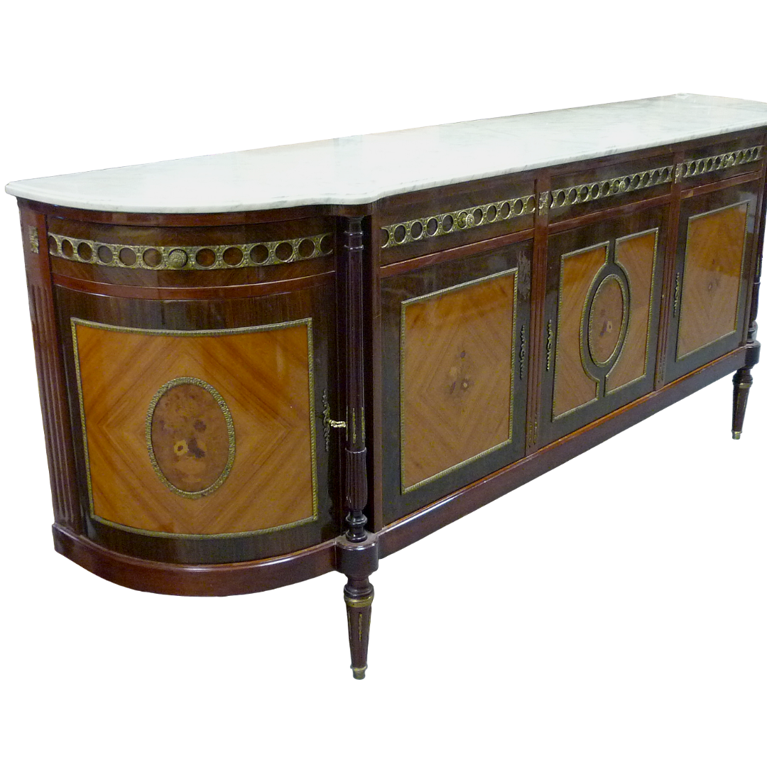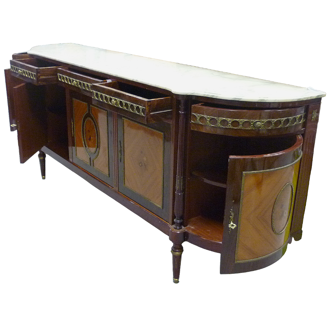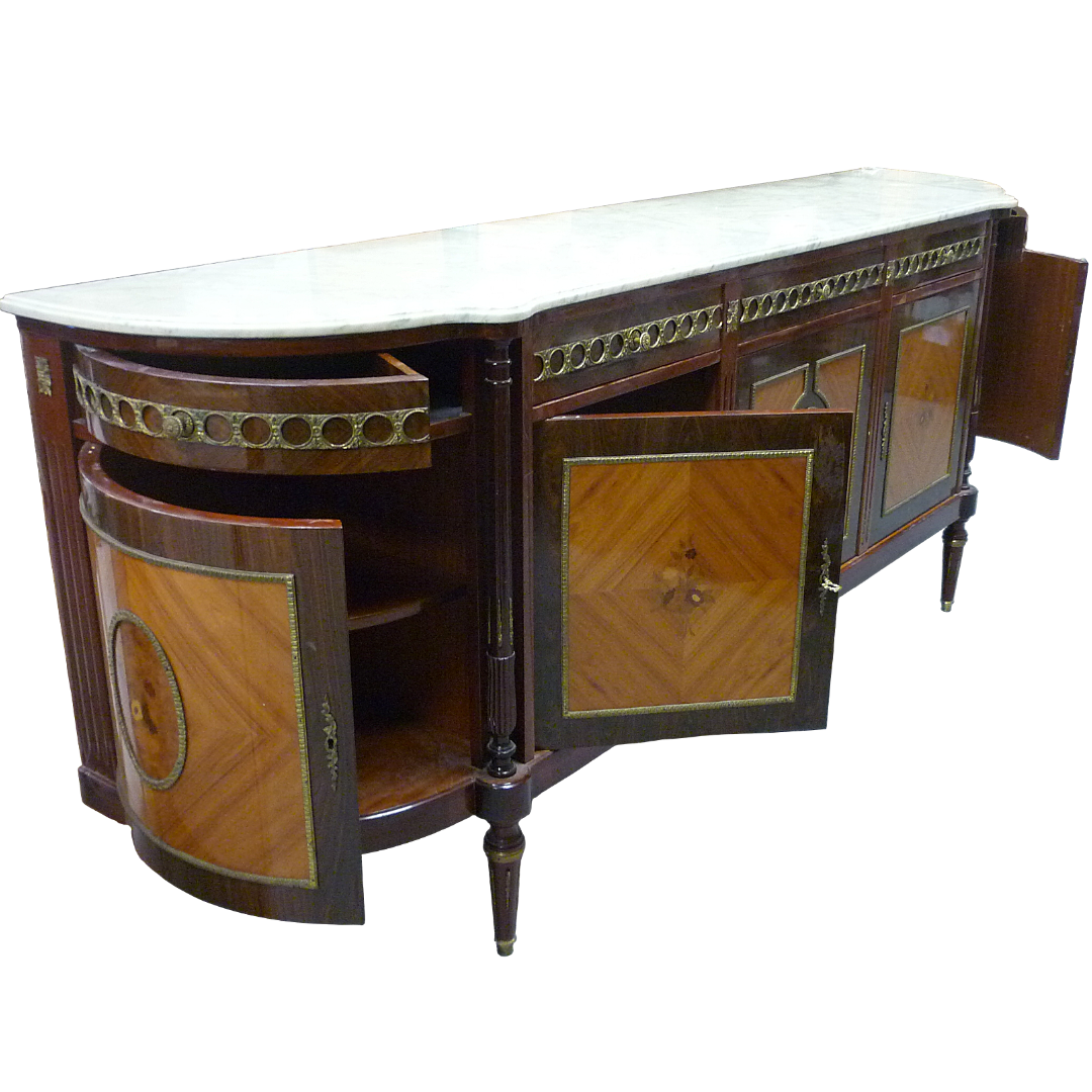 Argentier de style louis XVI en bois marqueté, recouvert d’n marbre de couleur ivoire