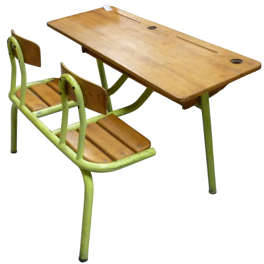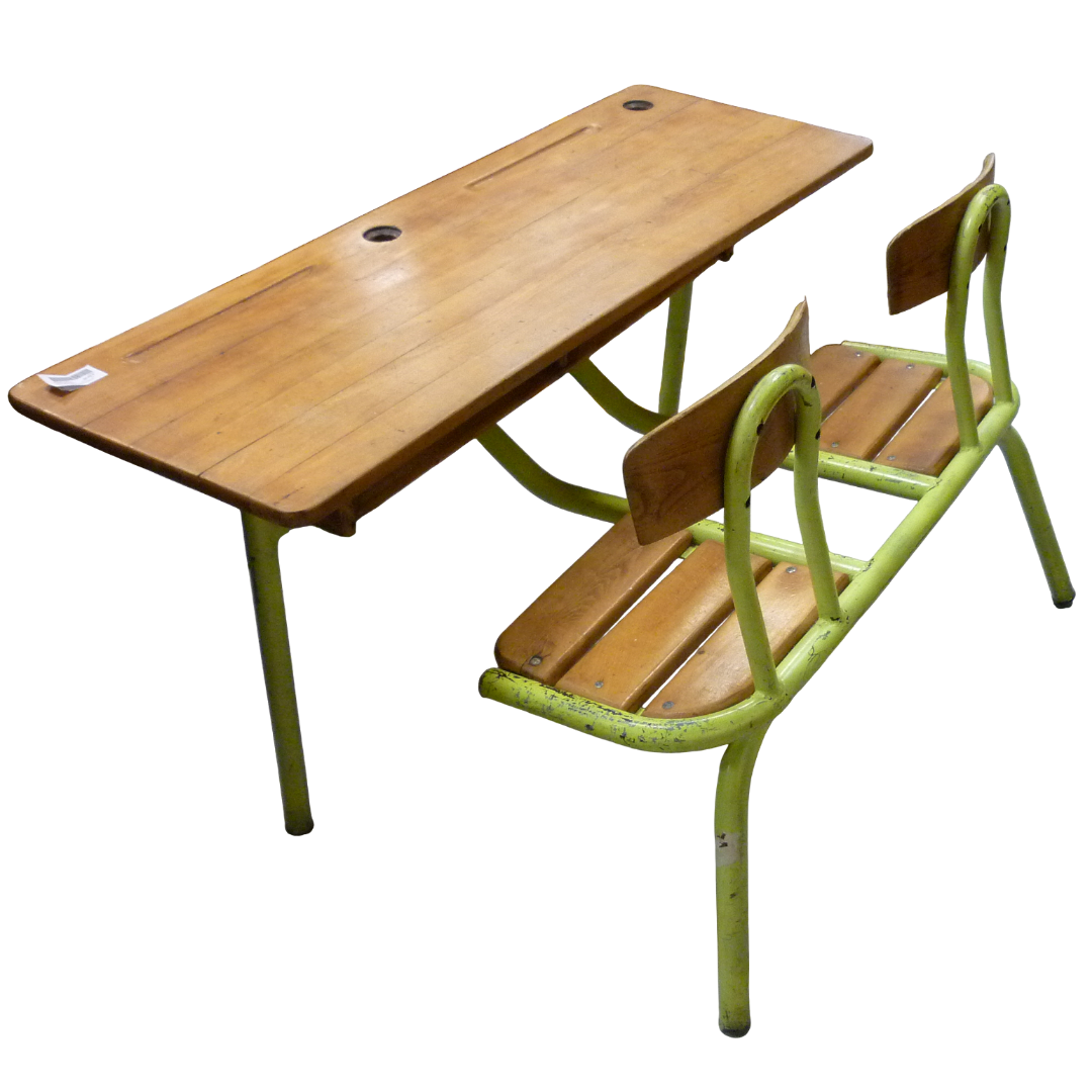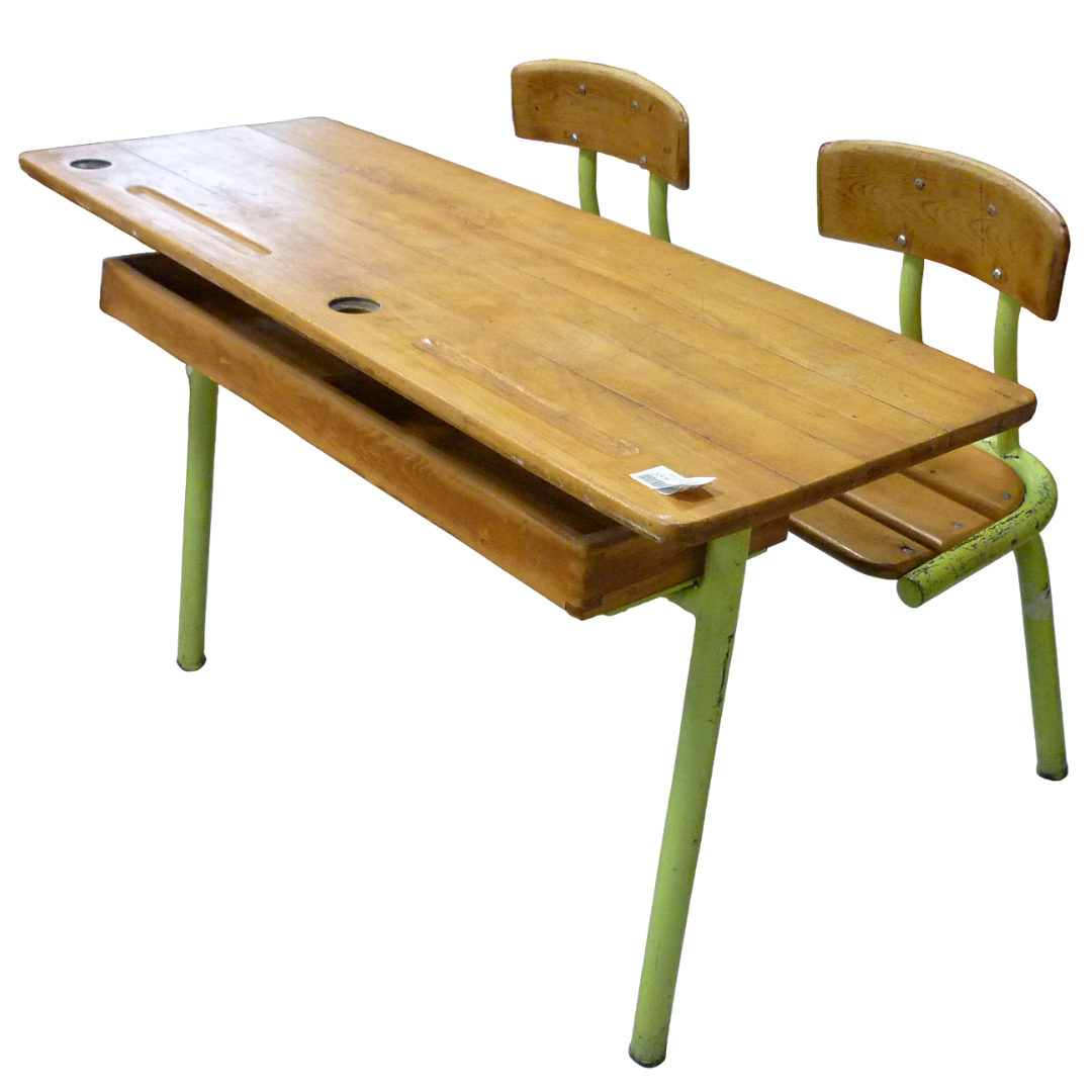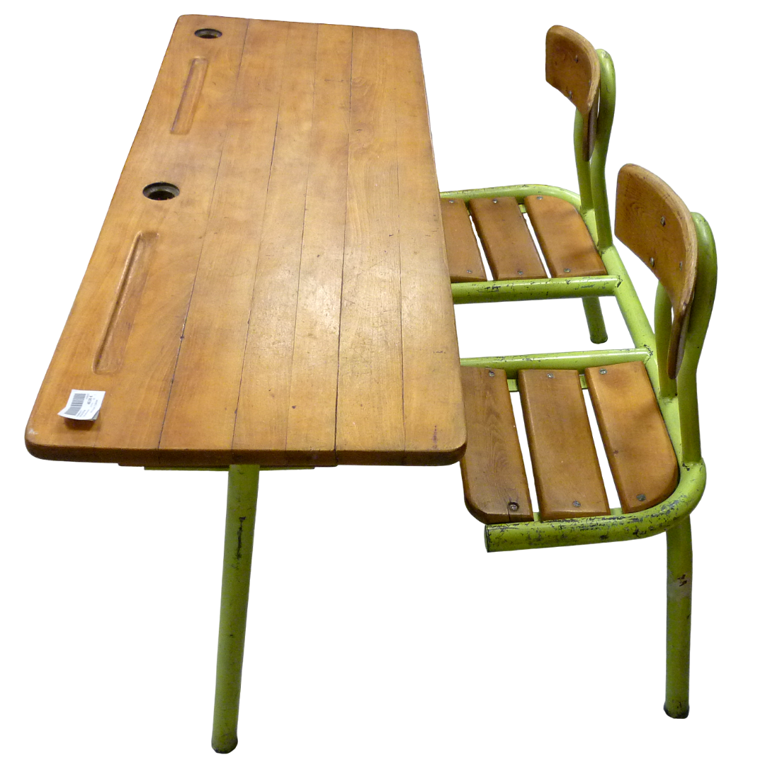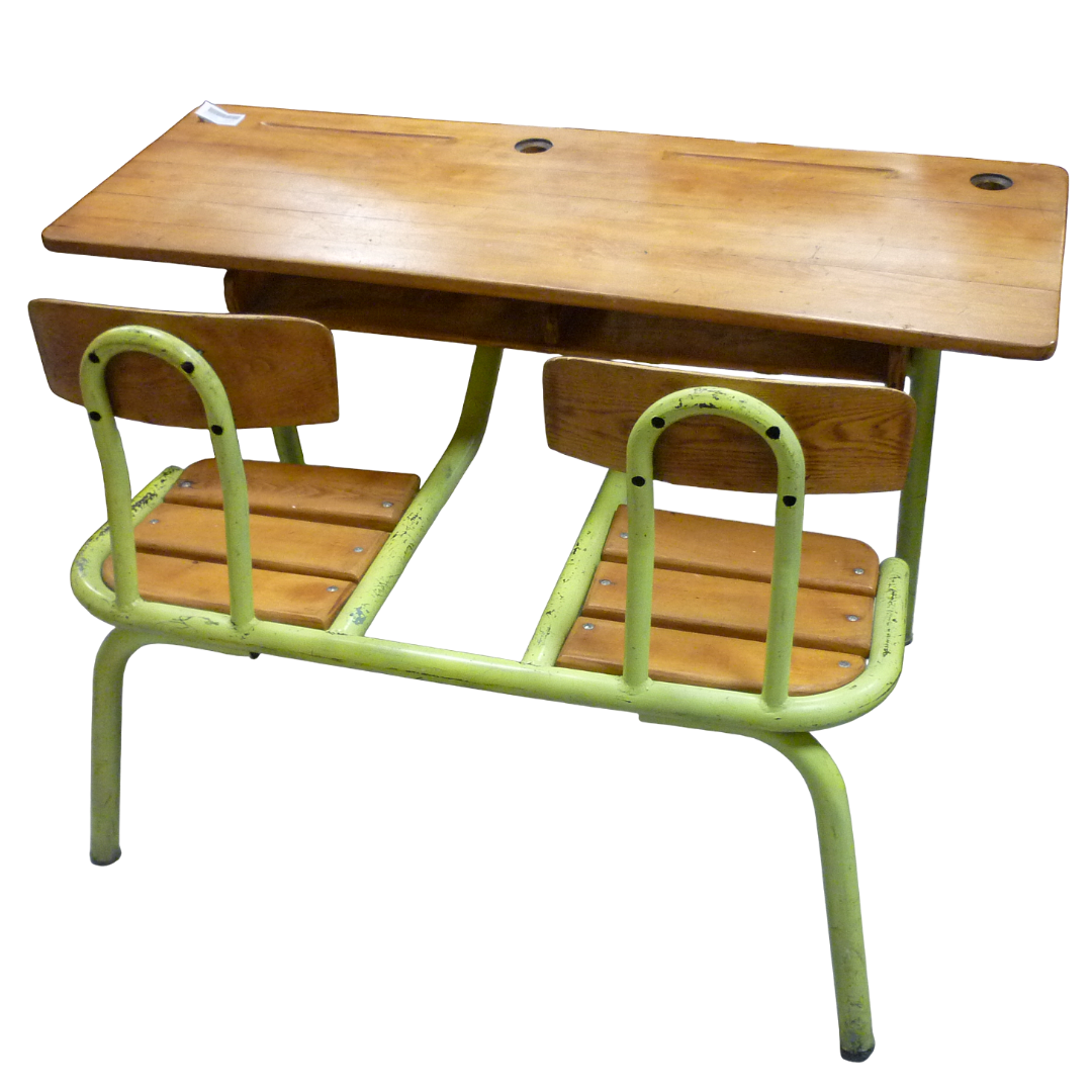 Double bureau d’écoliers vintage, métal et bois