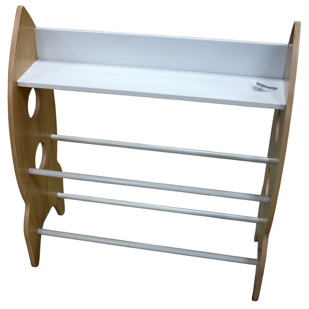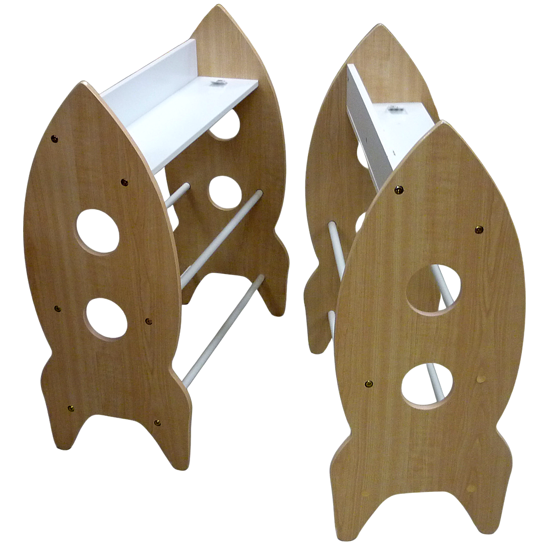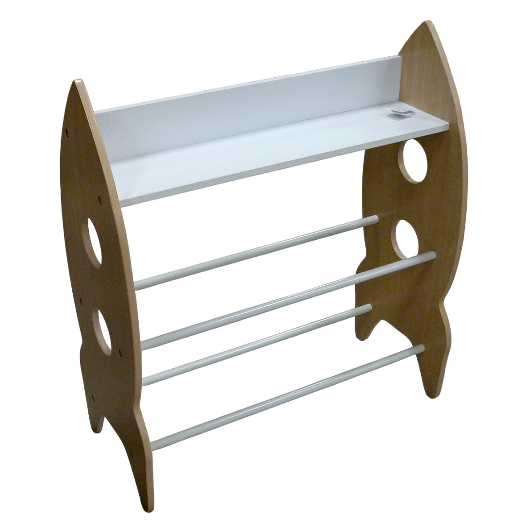 Montants en forme de fusées, étagère à chaussure en bois