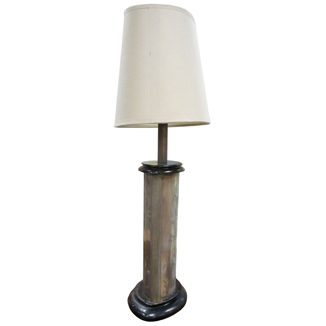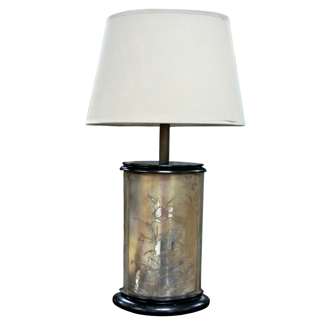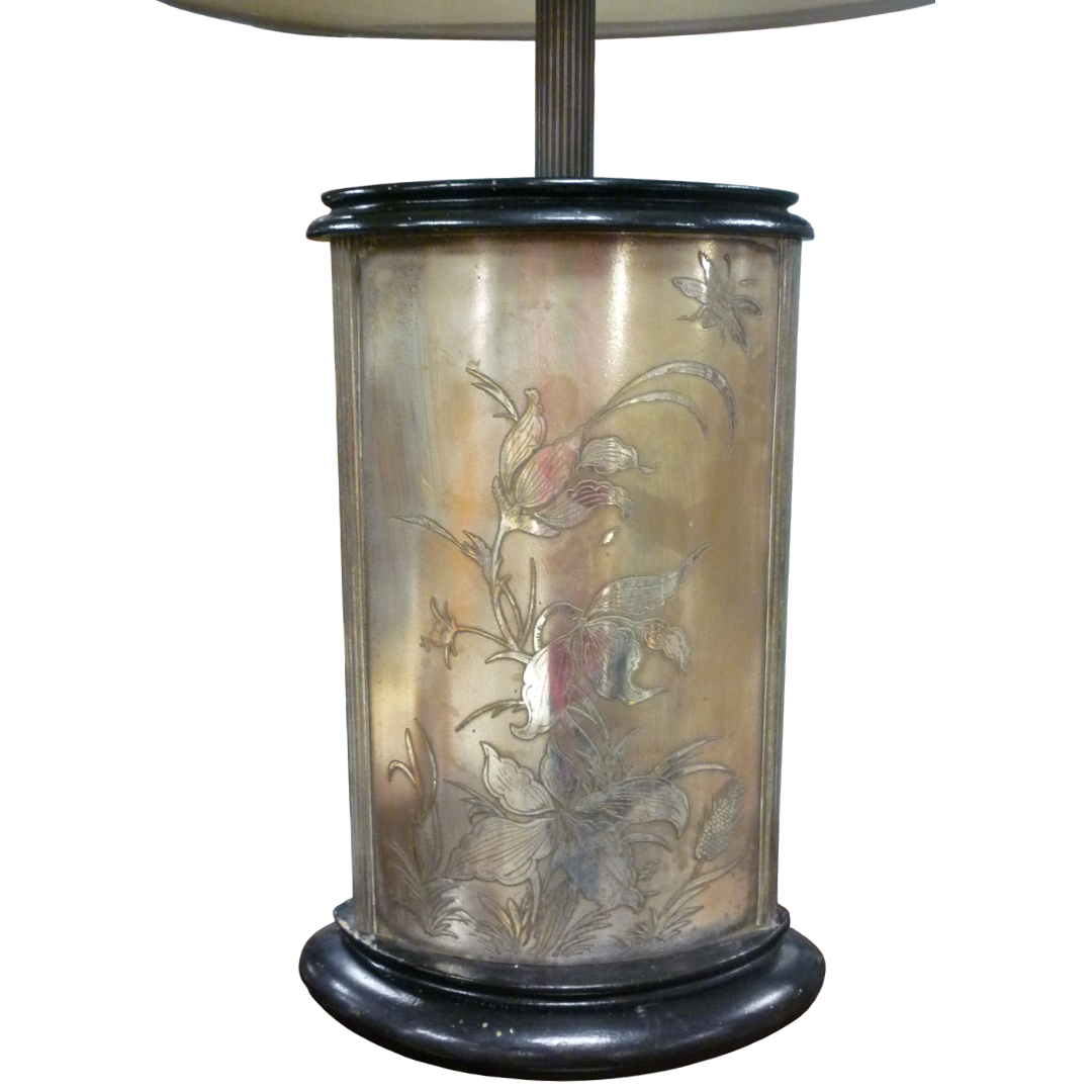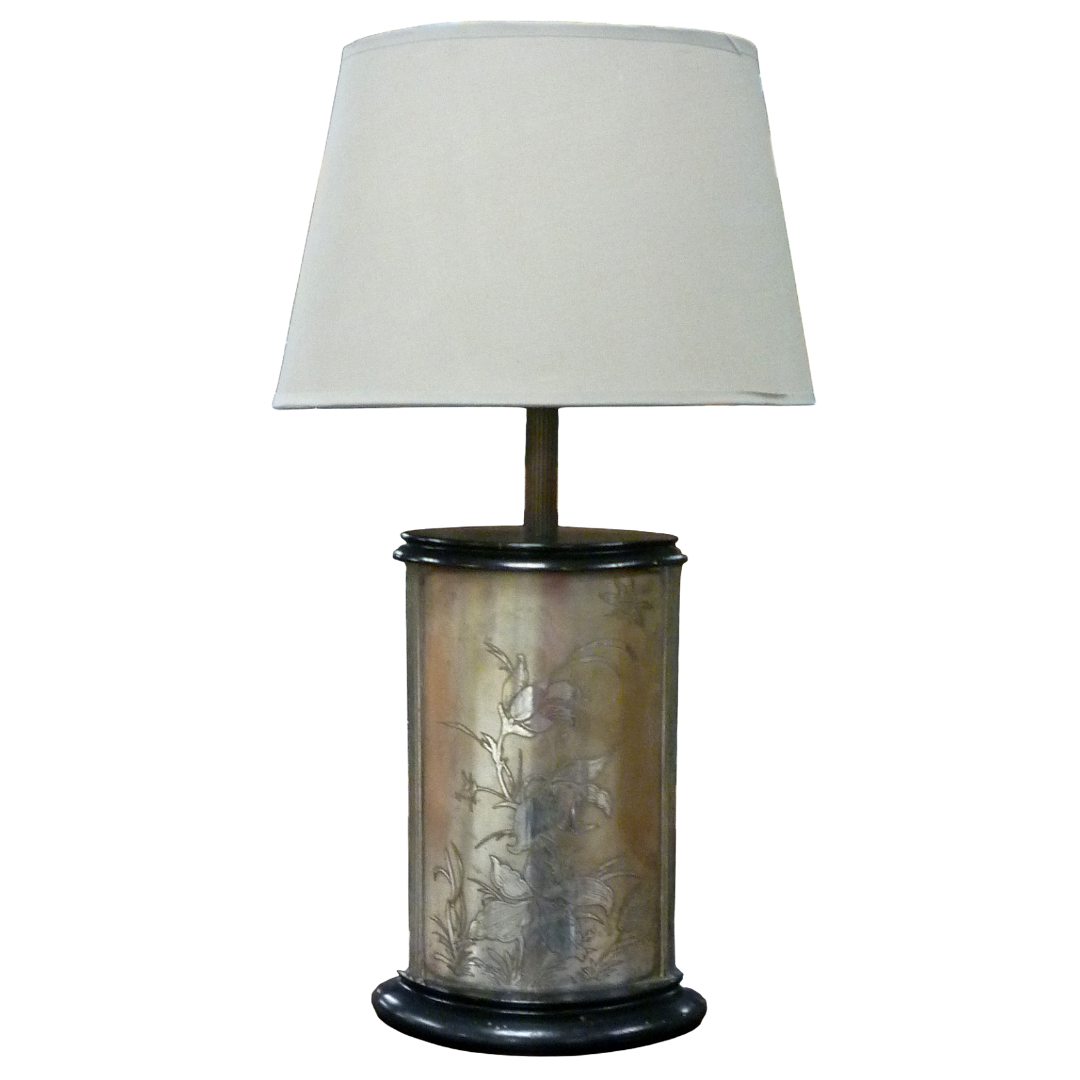 Pied de lampe en métal argenté gravé