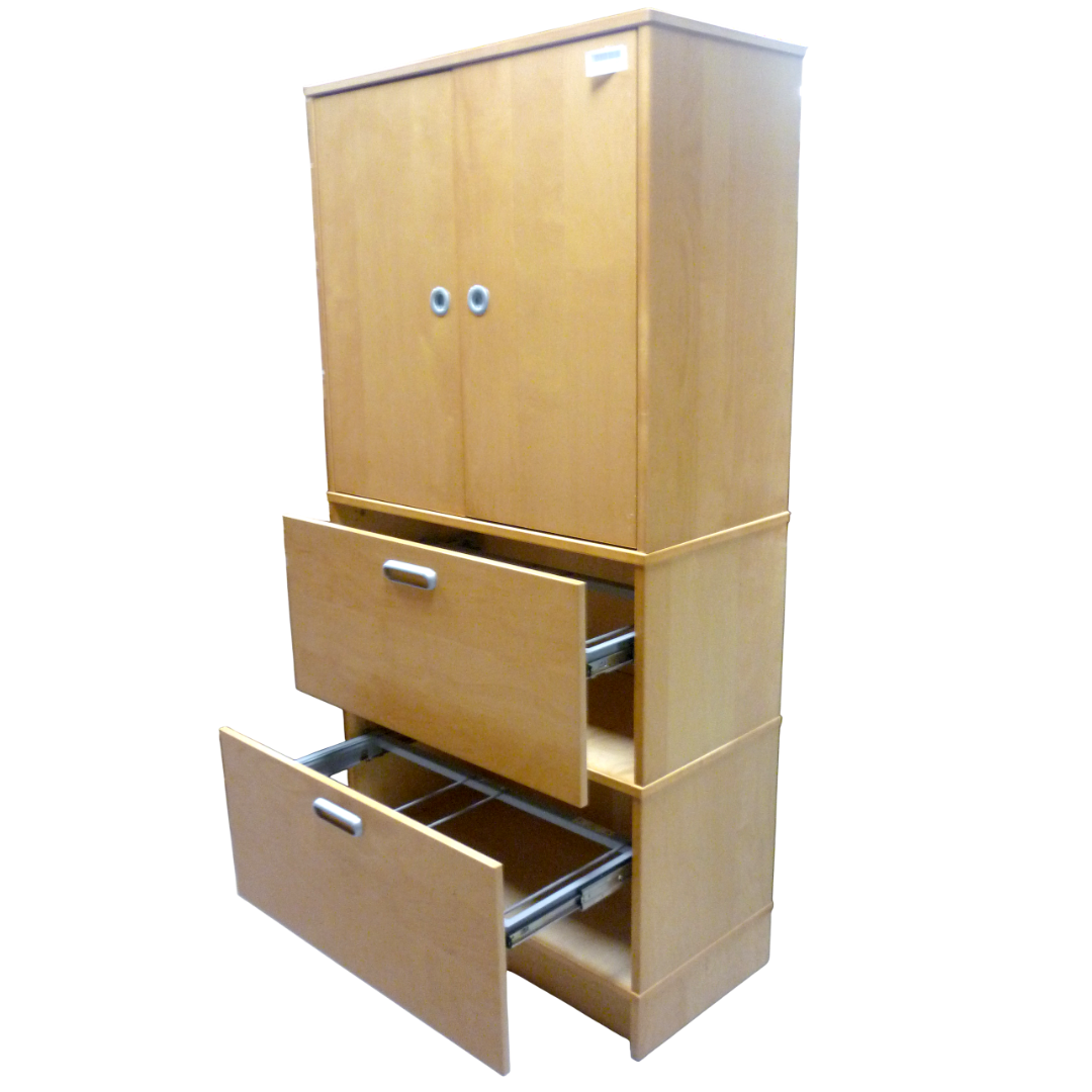 Meuble de rangement pour bureau, avec 2 grands tiroirs à classeurs suspendus, en mélaminé couleur pin
